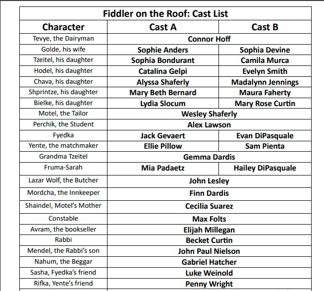 Cast A will peform Thursday, 4/23; Saturday, 4/25; and Friday, 5/1.